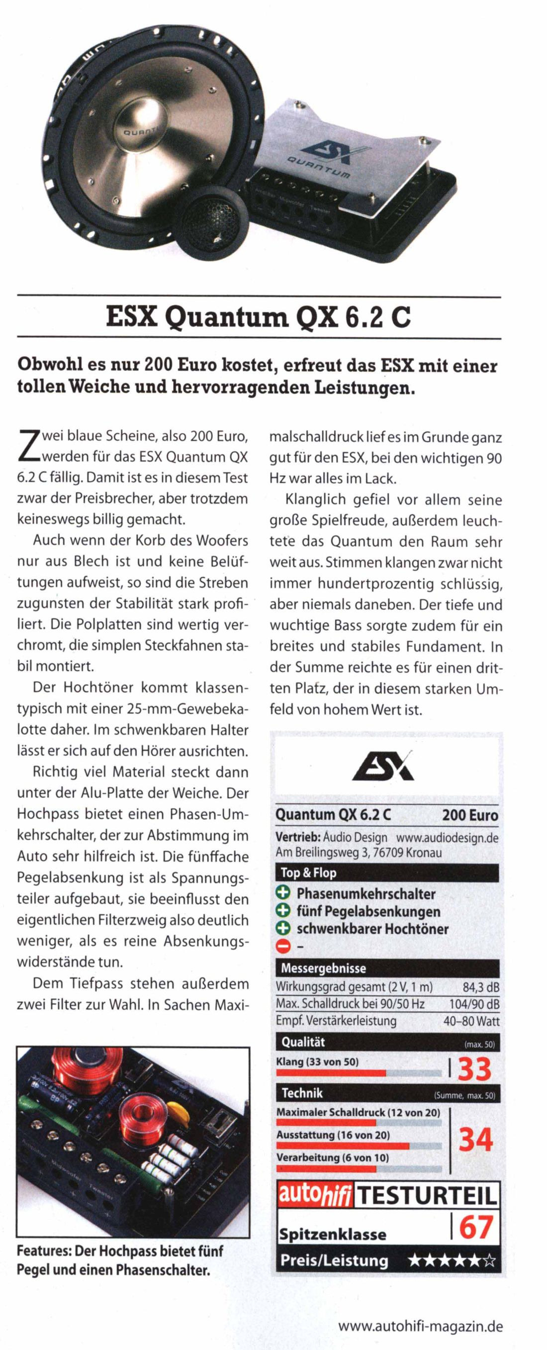 | Základní parametry ESX Quantum QX6.2C |