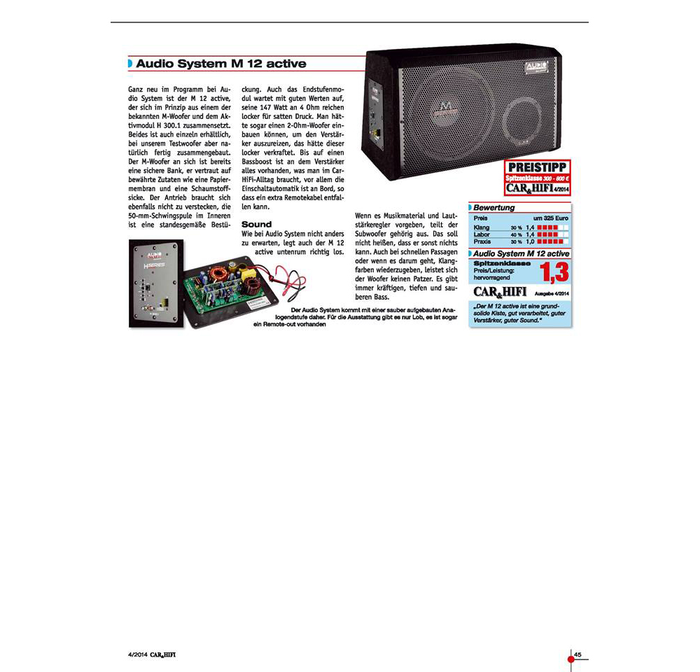 | Audio System M 12 ACTIVE - aktivní basreflexový subwoofer do automobilu s průměrem reproduktoru 300 mm |